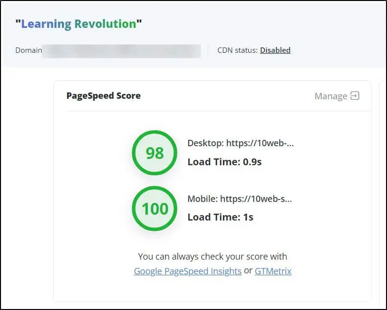 We’ve covered 10Web’s AI design generation and website editing features in detail, but its hosting and performance tools are just as impressive.