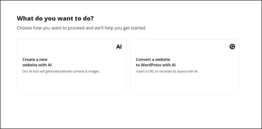 You can start from scratch with a brand-new design or convert an existing site to WordPress (we’ll cover that later). Let’s stick with creating a new website for now.